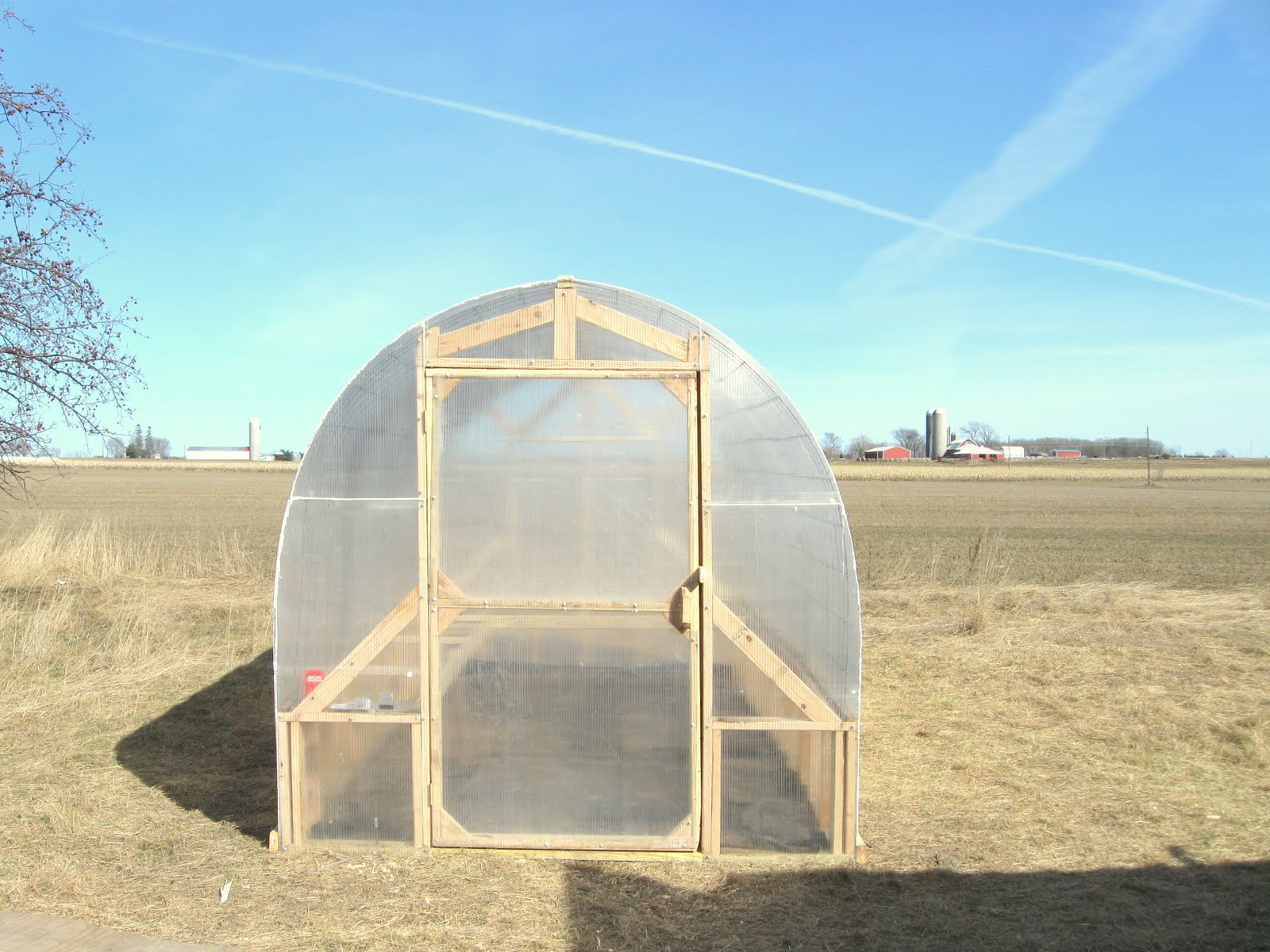 As for the numbers: my cattle panel greenhouse dimensions are 8'x12' and about 7.5' tall in the center; it cost me somewhere around $800 U.S. dollars, and it took me 6 weeks to build. You can build a much cheaper greenhouse, and I'll point out those opportunities in the explanation below.